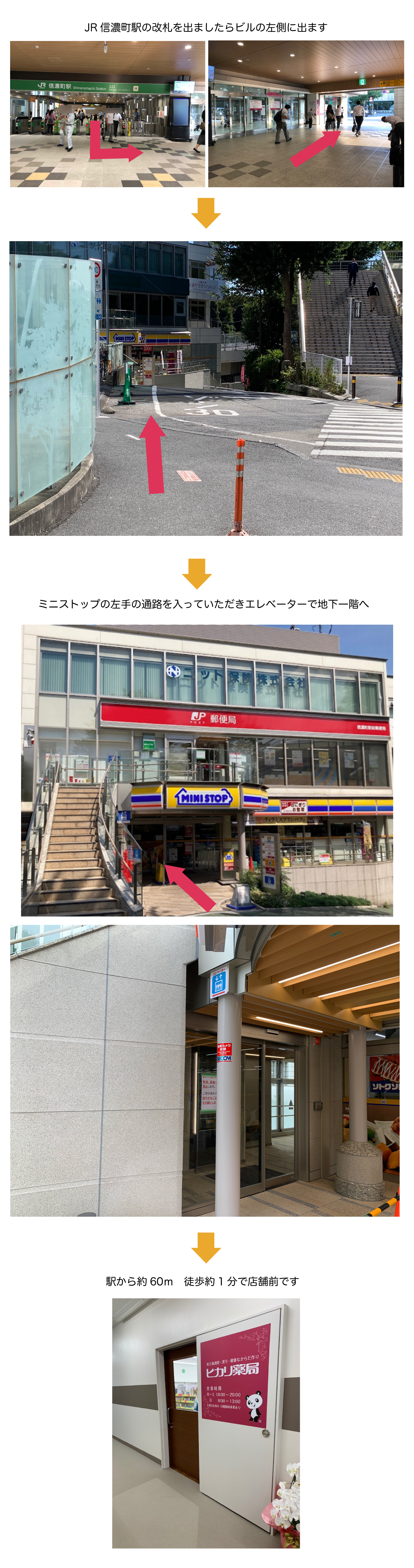 JR信濃町駅改札から当店まで